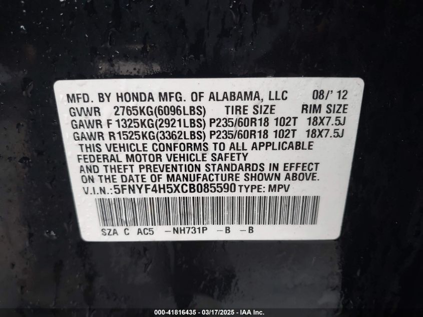 Цвет ЧерныйЦилиндры 6Привод Полный приводVIN 5FNYF4H5XCB******Состояние НеизвестноПовреждения Незначительные AutoRIA