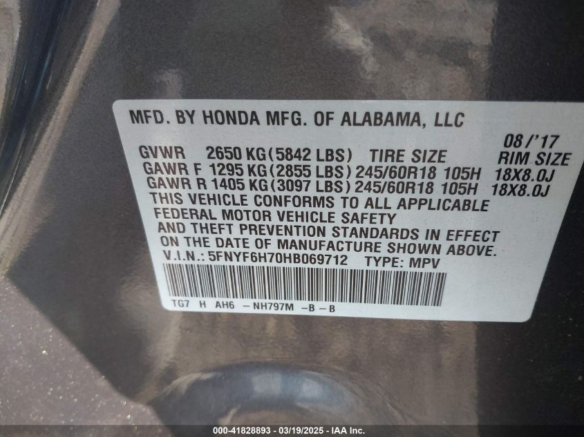 2017 HONDA PILOT 2017 року Бензин, 3.5, Полный привод, vin - 5FNYF6H70HB****** из США