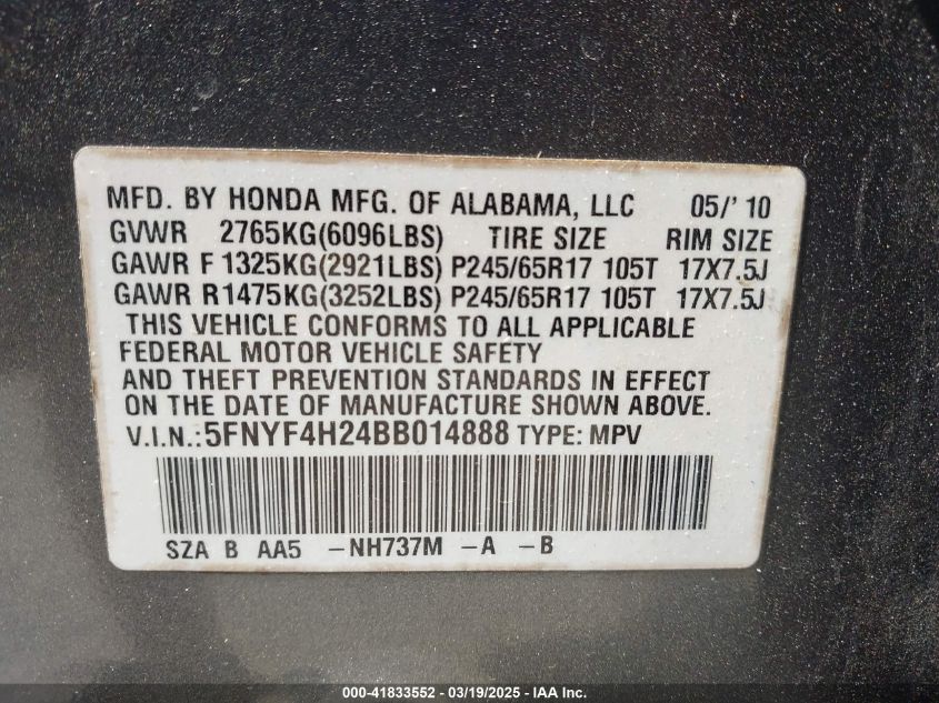 Цвет СерыйЦилиндры 6Привод Полный приводVIN 5FNYF4H24BB******Состояние НеизвестноПовреждения Передняя или задняя AutoRIA