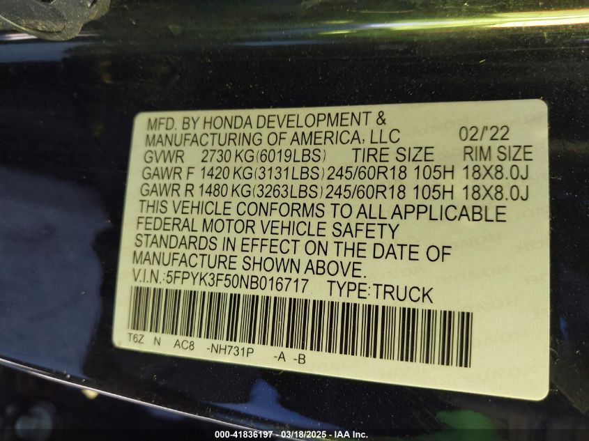 2022 HONDA RIDGELINE 2022 року Бензин, 3.5, Полный привод, vin - 5FPYK3F50NB****** из США