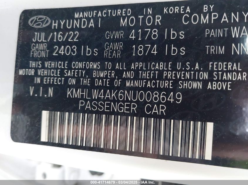 2022 HYUNDAI ELANTRA 2022 року Бензин, 2.0, Передний привод, vin - KMHLW4AK6NU****** из США