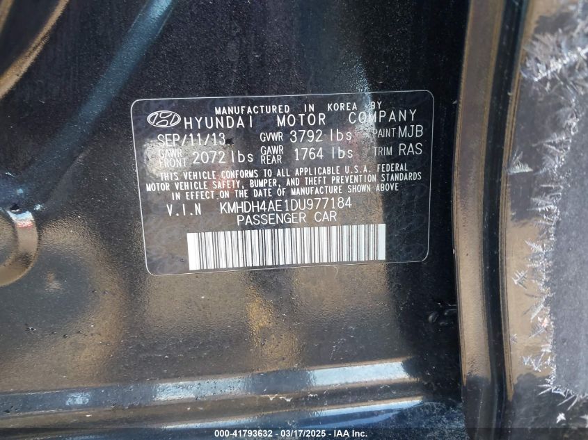 2013 HYUNDAI ELANTRA 2013 року Бензин, 1.8, Передний привод, vin - KMHDH4AE1DU****** из США