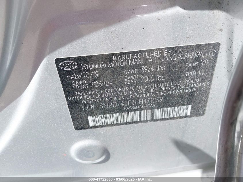 2019 HYUNDAI ELANTRA 2019 року Бензин, 2.0, Передний привод, vin - 5NPD74LF2KH****** из США