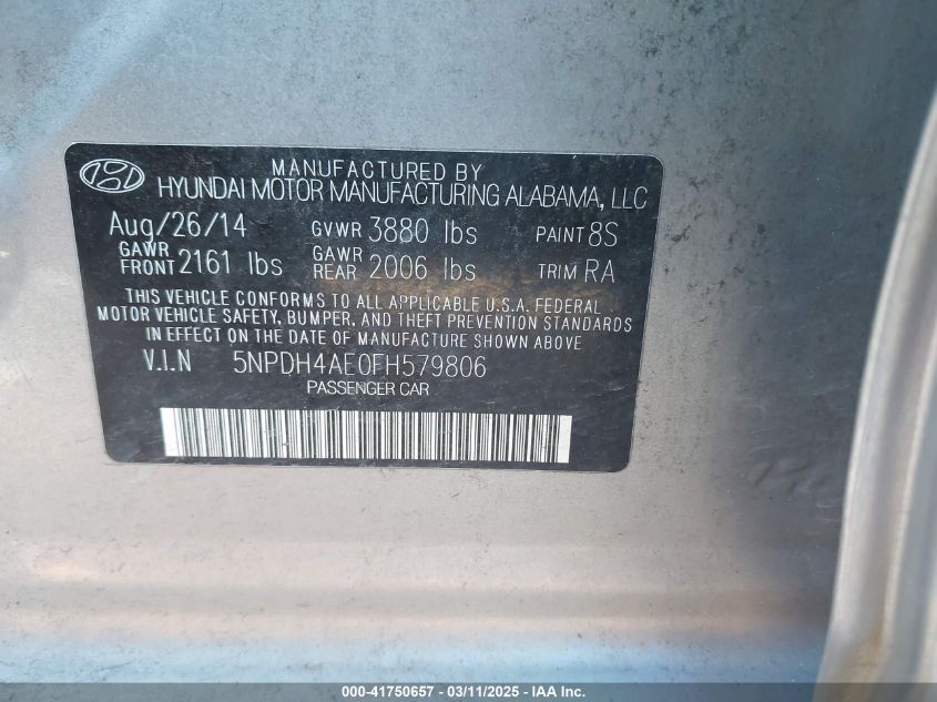 2015 HYUNDAI ELANTRA 2015 року Бензин, 1.8, Передний привод, vin - 5NPDH4AE0FH****** из США