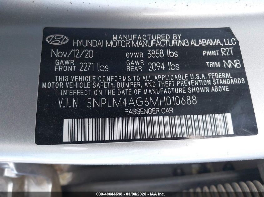 2021 HYUNDAI ELANTRA 2021 року Бензин, 2.0, Передний привод, vin - 5NPLM4AG6MH****** из США