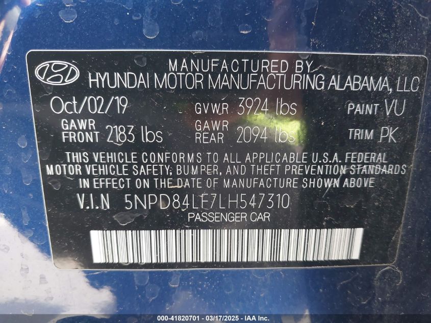2020 HYUNDAI ELANTRA 2020 року Бензин, 2.0, Передний привод, vin - 5NPD84LF7LH****** из США