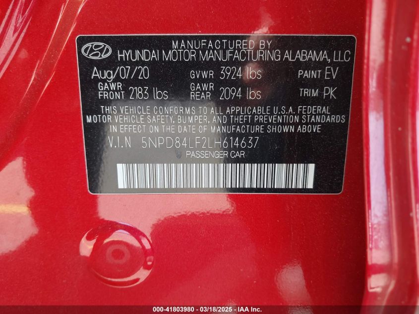 2020 HYUNDAI ELANTRA 2020 року Бензин, 2.0, Передний привод, vin - 5NPD84LF2LH****** из США