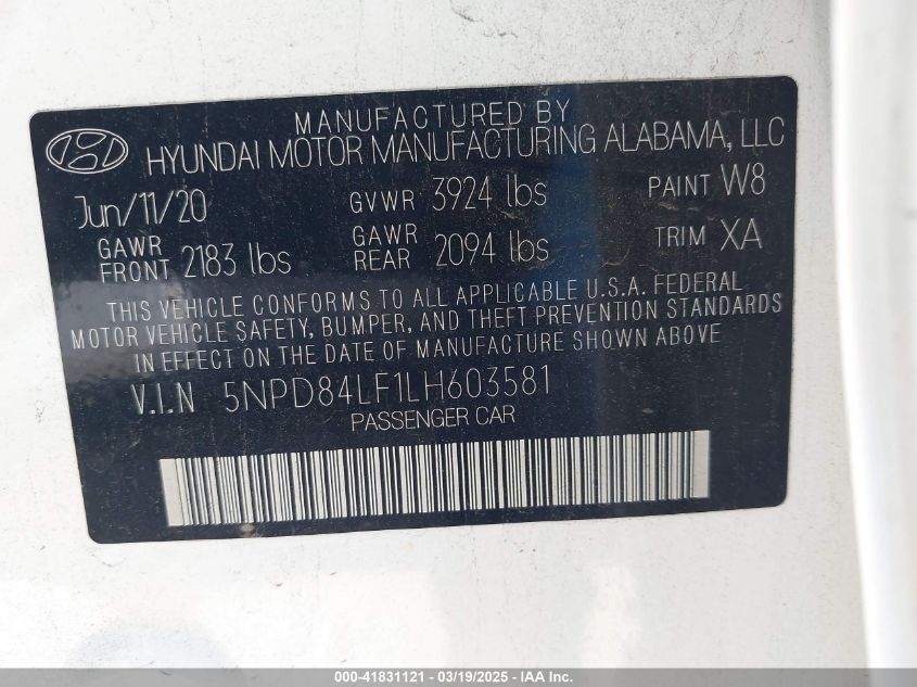 2020 HYUNDAI ELANTRA 2020 року Бензин, 2.0, Передний привод, vin - 5NPD84LF1LH****** из США