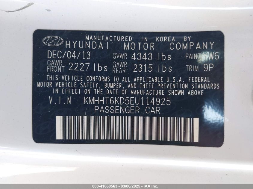 Цвет БелыйЦилиндры 4Привод Задний приводVIN KMHHT6KD5EU******Состояние НеизвестноПовреждения Передняя или задняяДата аукциона 2025-03-20 AutoRIA