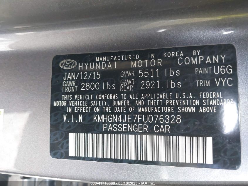 2015 HYUNDAI GENESIS 2015 року Бензин, 3.8, Полный привод, vin - KMHGN4JE7FU****** из США