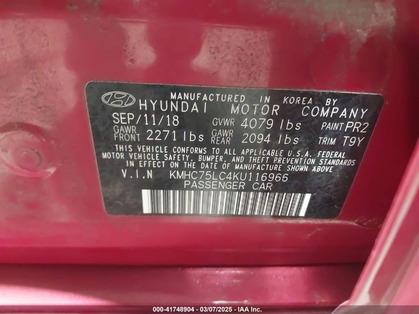 2019 HYUNDAI IONIQ 2019 року Гибрид, 1.6, Передний привод, vin - KMHC75LC4KU****** из США