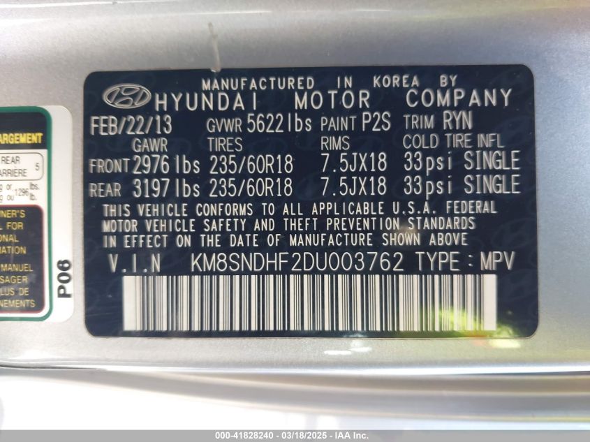 Цвет СеребряныйЦилиндры 6Привод Полный приводVIN KM8SNDHF2DU******Состояние НеизвестноПовреждения Передняя или задняя AutoRIA