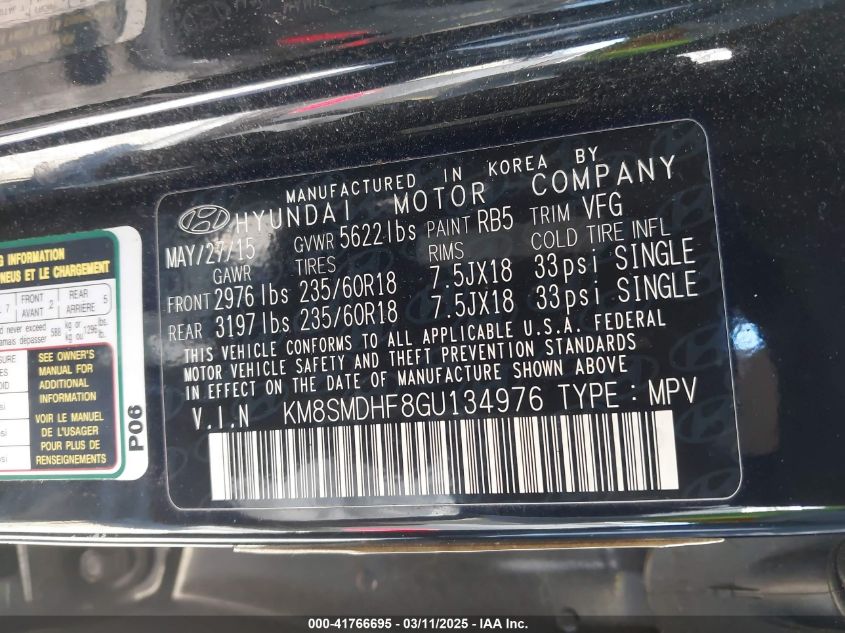 2016 HYUNDAI SANTA FE 2016 року Бензин, 3.3, Полный привод, vin - KM8SMDHF8GU****** из США
