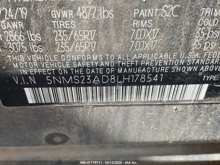 2020 HYUNDAI SANTA FE 2020 року Бензин, 2.4, Передний привод, vin - 5NMS23AD8LH****** из США