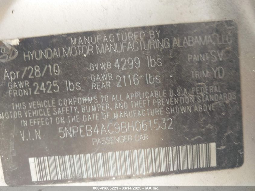 Цвет СеребряныйЦилиндры 4Привод Передний приводVIN 5NPEB4AC9BH******Состояние НеизвестноПовреждения Передняя или задняя AutoRIA