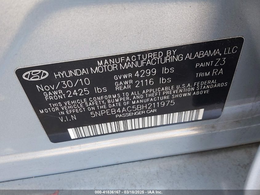 2011 HYUNDAI SONATA 2011 року Бензин, 2.4, Передний привод, vin - 5NPEB4AC5BH****** из США