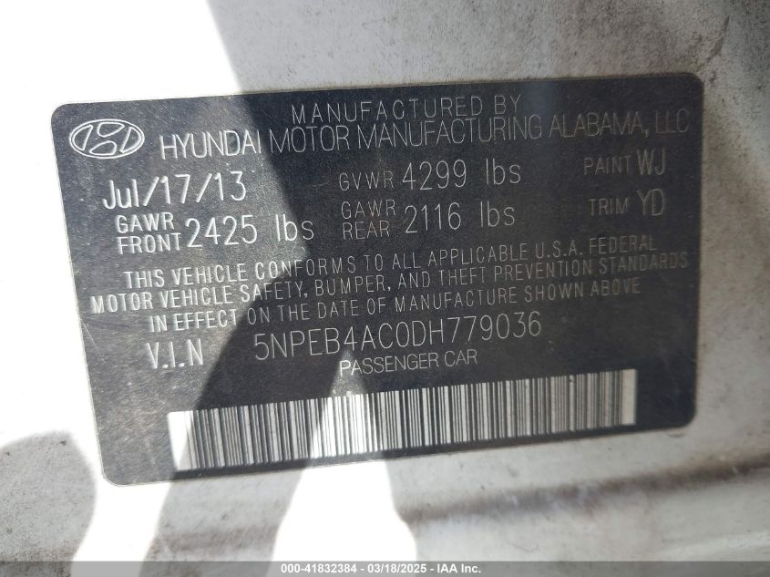 Цвет БелыйЦилиндры 4Привод Передний приводVIN 5NPEB4AC0DH******Состояние НеизвестноПовреждения Незначительные AutoRIA