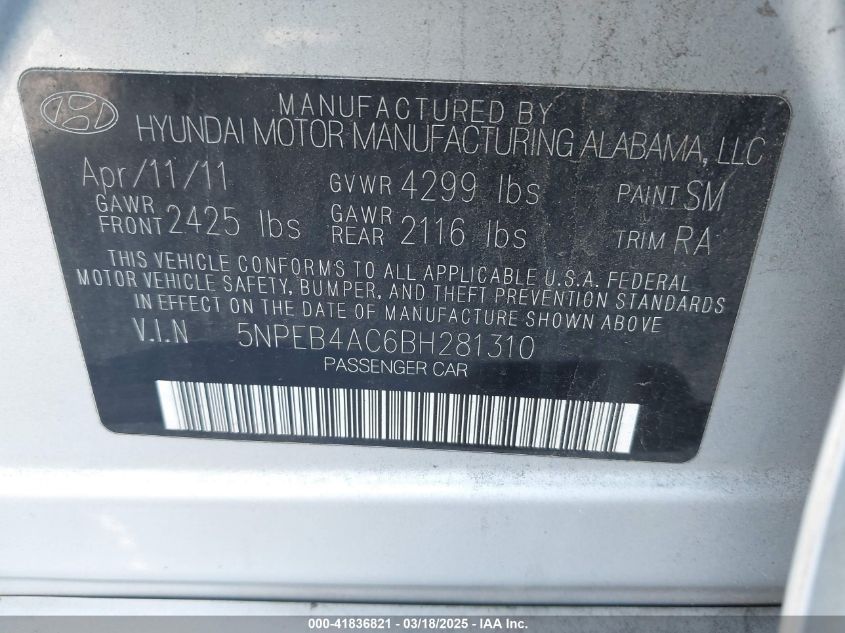 2011 HYUNDAI SONATA 2011 року Бензин, 2.4, Передний привод, vin - 5NPEB4AC6BH****** из США
