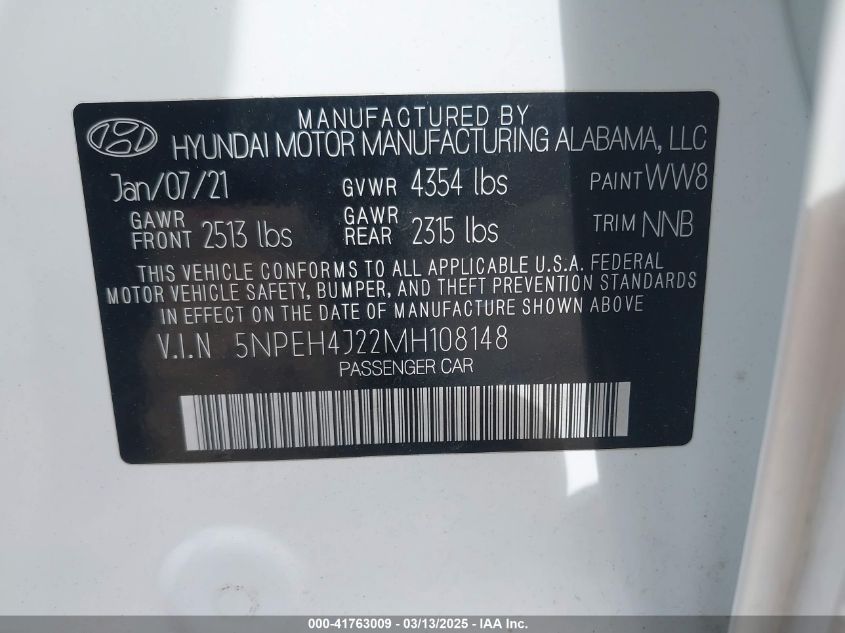 2021 HYUNDAI SONATA 2021 року Бензин, 1.6, Передний привод, vin - 5NPEH4J22MH****** из США