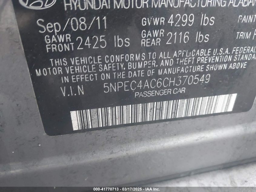 2012 HYUNDAI SONATA 2012 року Бензин, 2.4, Передний привод, vin - 5NPEC4AC6CH****** из США
