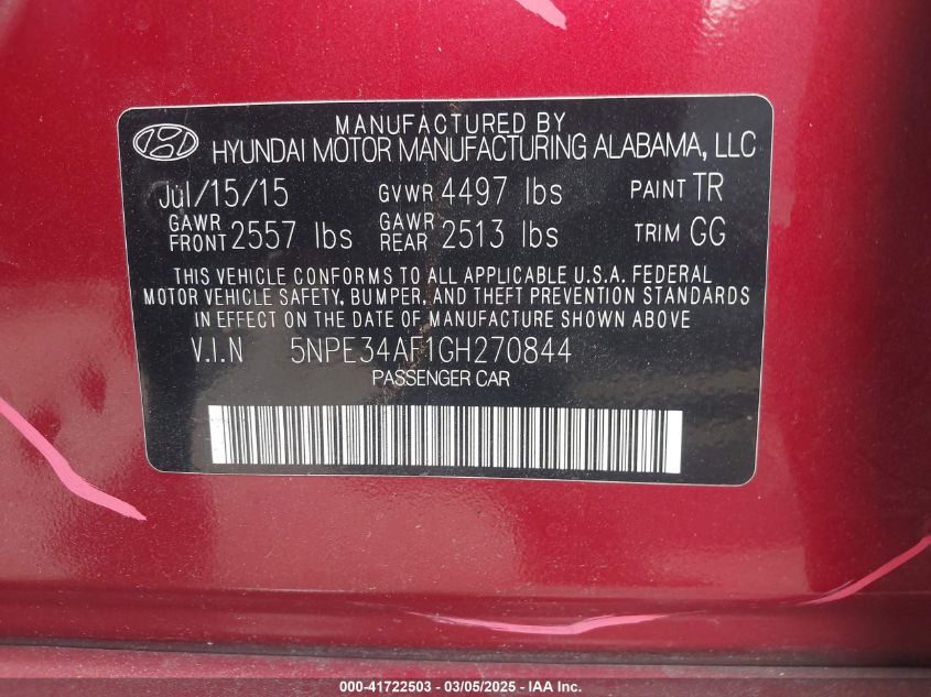 Цвет БордовыйЦилиндры 4Привод Передний приводVIN 5NPE34AF1GH******Состояние НеизвестноПовреждения Левая сторона AutoRIA
