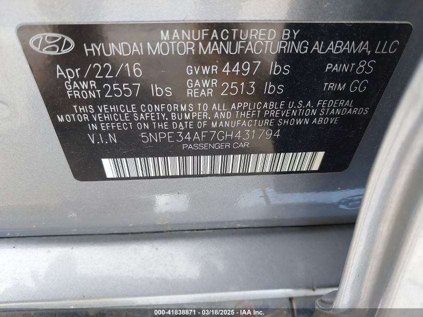 2016 HYUNDAI SONATA 2016 року Бензин, 2.4, Передний привод, vin - 5NPE34AF7GH****** из США