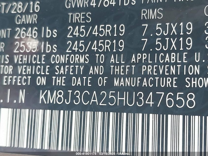 2017 HYUNDAI TUCSON 2017 року Бензин, 1.6, Полный привод, vin - KM8J3CA25HU****** из США