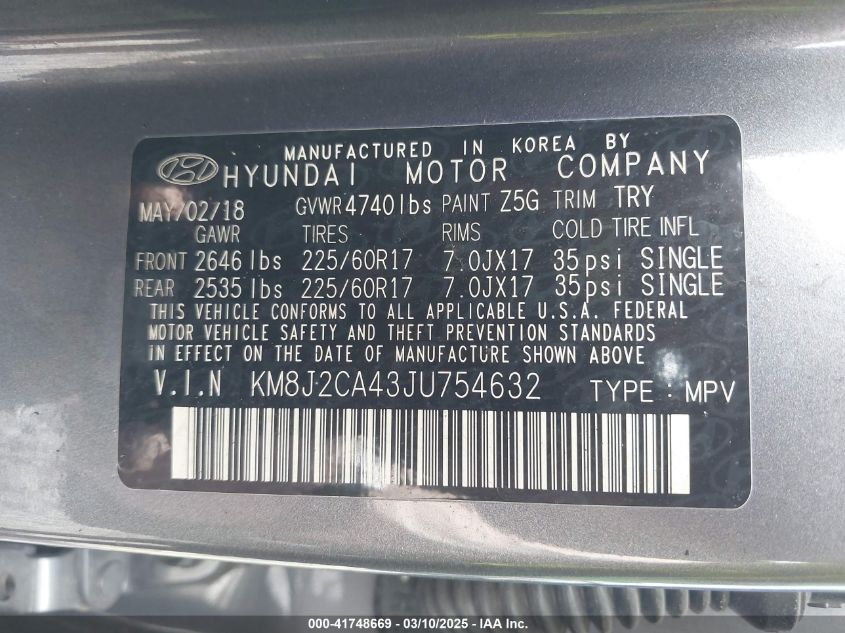 2018 HYUNDAI TUCSON 2018 року Бензин, 2.0, Полный привод, vin - KM8J2CA43JU****** из США