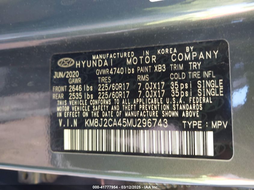 2021 HYUNDAI TUCSON 2021 року Бензин, 2.0, Полный привод, vin - KM8J2CA45MU****** из США