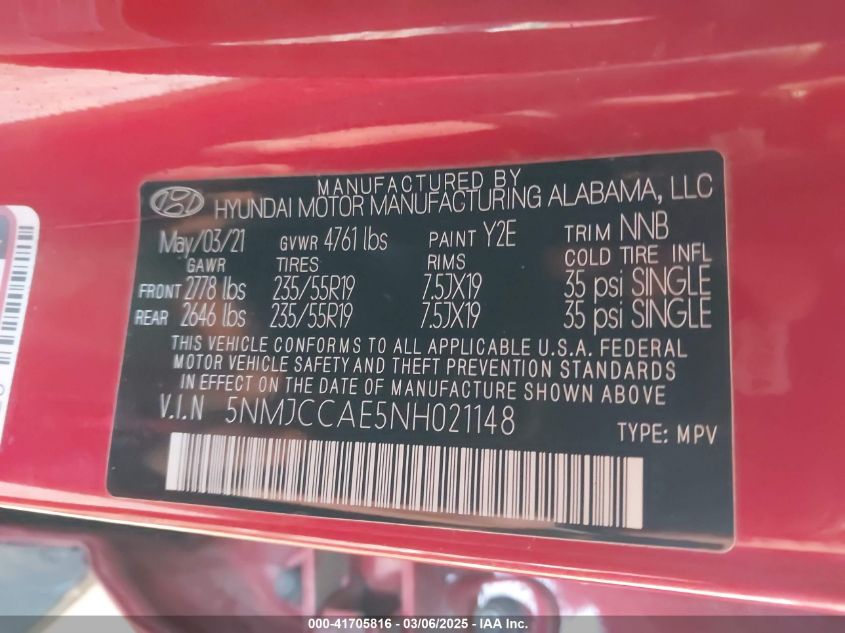 2022 HYUNDAI TUCSON 2022 року Бензин, 2.5, Полный привод, vin - 5NMJCCAE5NH****** из США