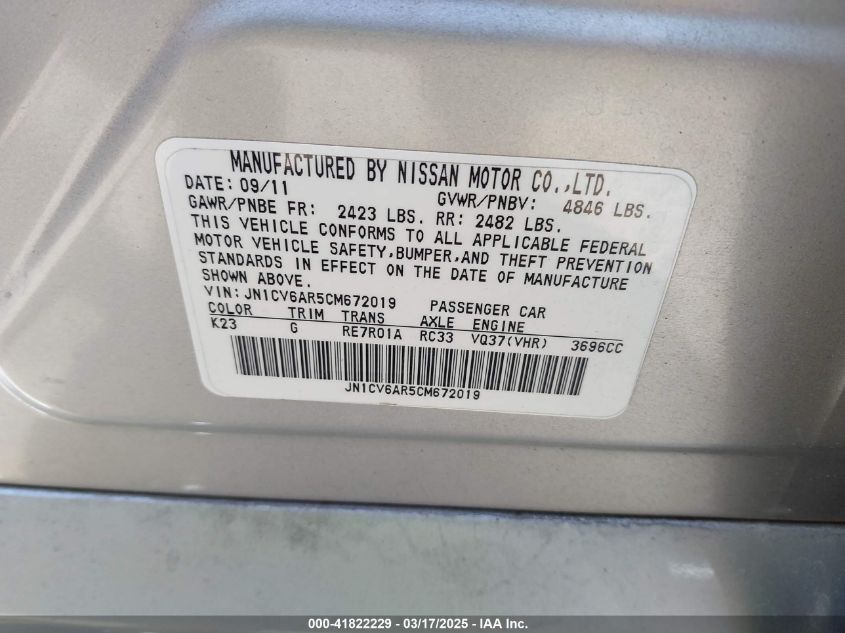 Цвет СеребряныйЦилиндры 6Привод Полный приводVIN JN1CV6AR5CM******Состояние НеизвестноПовреждения Левая сторона AutoRIA