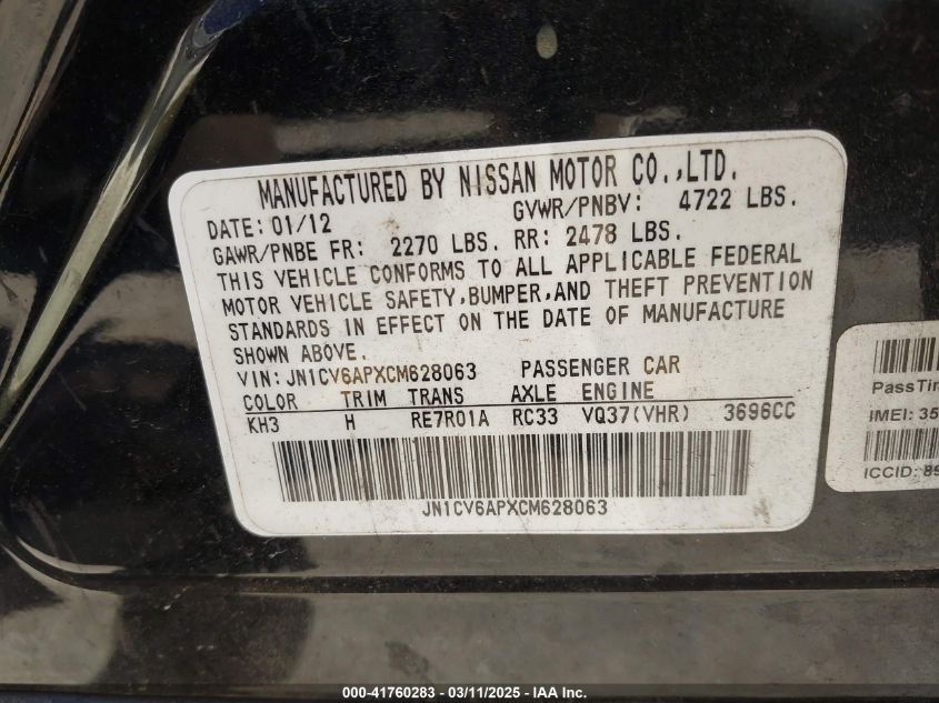 2012 INFINITI G37 2012 року Бензин, 3.7, Задний привод, vin - JN1CV6APXCM****** из США