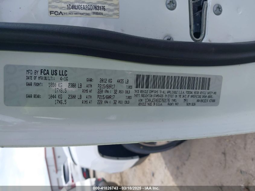 2016 JEEP COMPASS 2016 року Бензин, 2.0, Передний привод, vin - 1C4NJCEA2GD****** из США