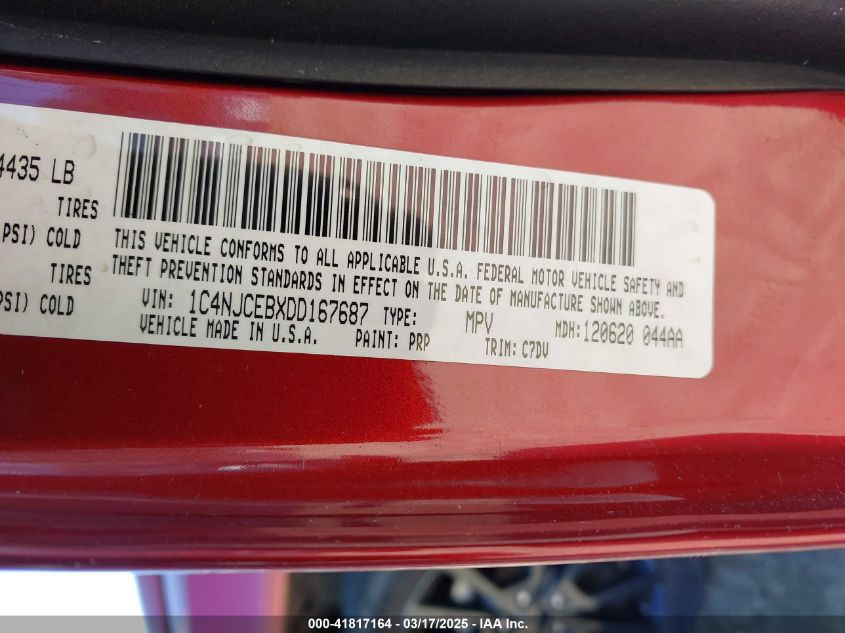 Цвет БежевыйЦилиндры 4Привод Передний приводVIN 1C4NJCEBXDD******Состояние НеизвестноПовреждения НезначительныеДата аукциона 2025-03-20 AutoRIA