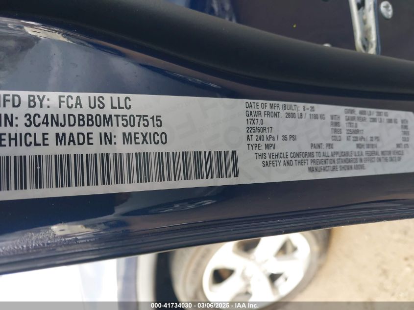 Цвет СинийЦилиндры 4Привод Полный приводVIN 3C4NJDBB0MT******Состояние НеизвестноПовреждения Передняя или задняя AutoRIA