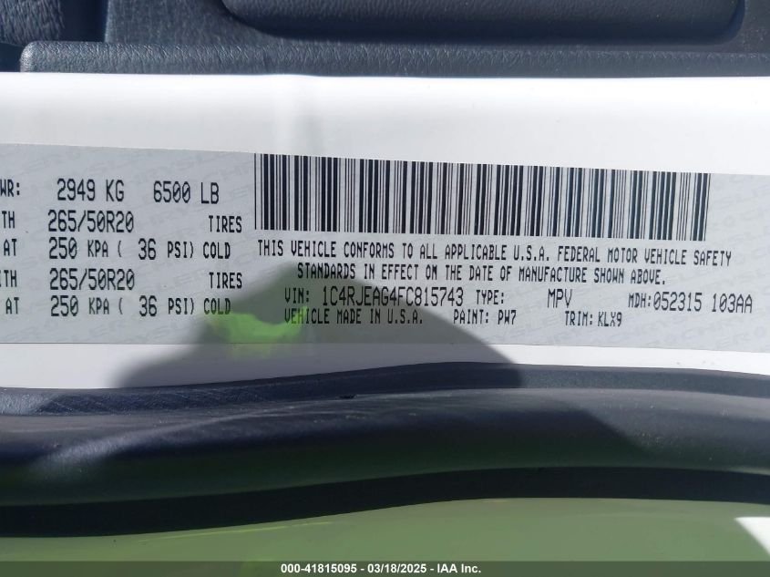 2015 JEEP GRAND CHEROKEE 2015 року Бензин, 3.6, Неизвестно, vin - 1C4RJEAG4FC****** из США