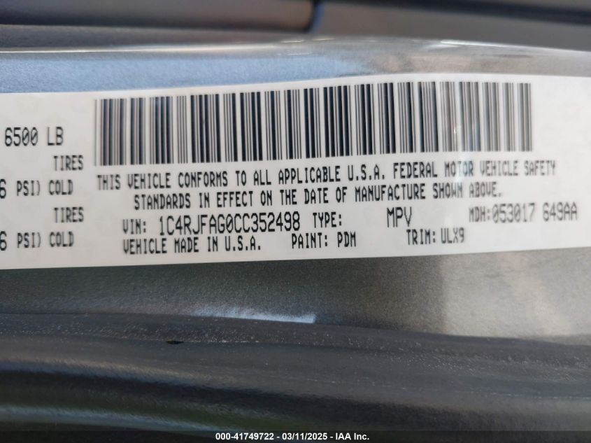 2012 JEEP GRAND CHEROKEE 2012 року Бензин, 3.6, Полный привод, vin - 1C4RJFAG0CC****** из США