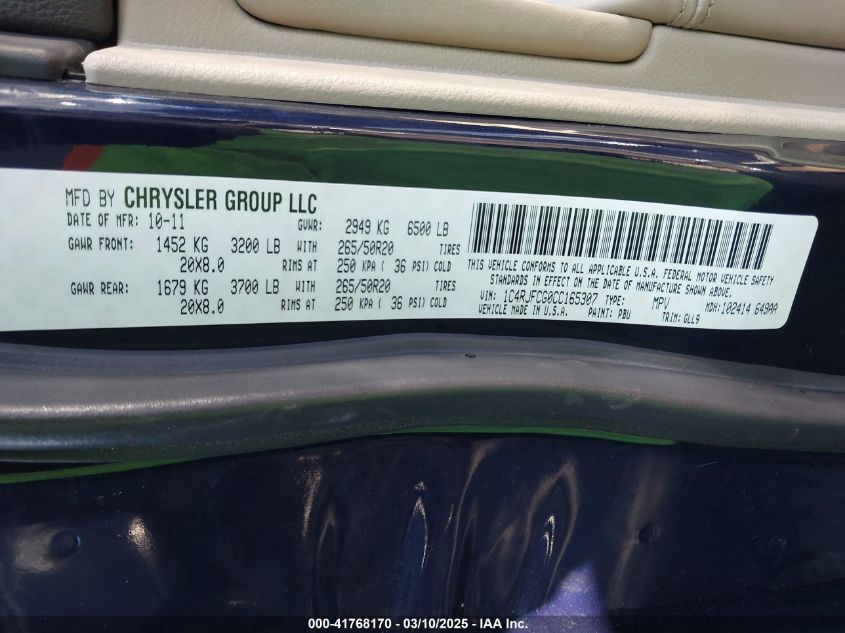 2012 JEEP GRAND CHEROKEE 2012 року Бензин, 3.6, Полный привод, vin - 1C4RJFCG0CC****** из США