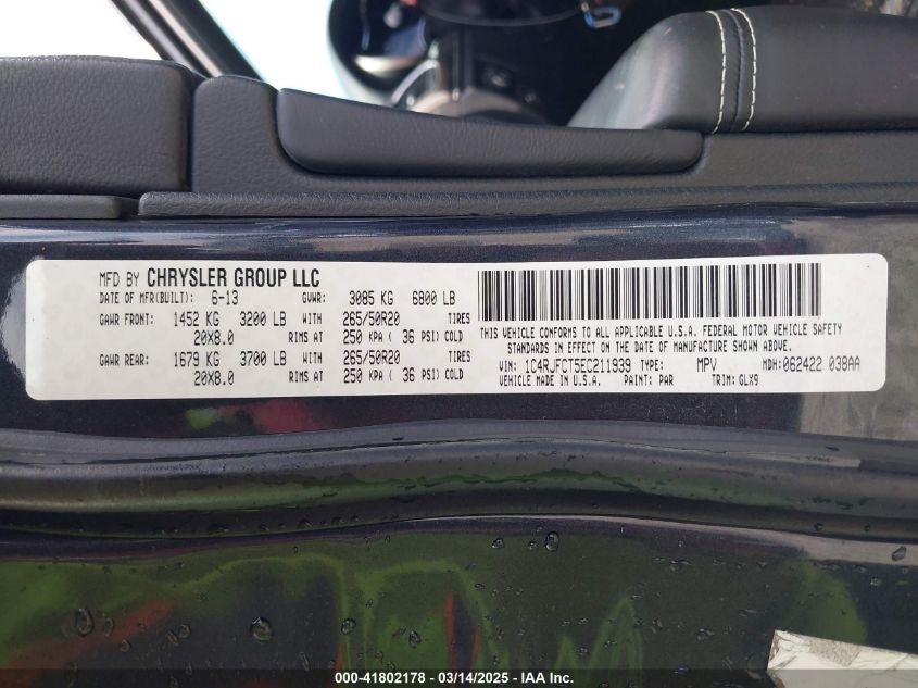 2014 JEEP GRAND CHEROKEE 2014 року Бензин, 5.7, Полный привод, vin - 1C4RJFCT5EC****** из США