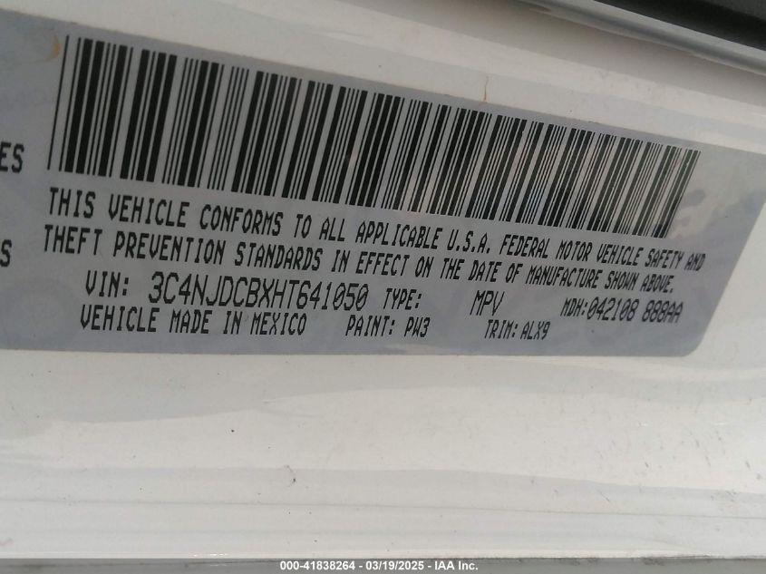 Цвет БелыйЦилиндры 4Привод Полный приводVIN 3C4NJDCBXHT******Состояние НеизвестноПовреждения Передняя или задняя