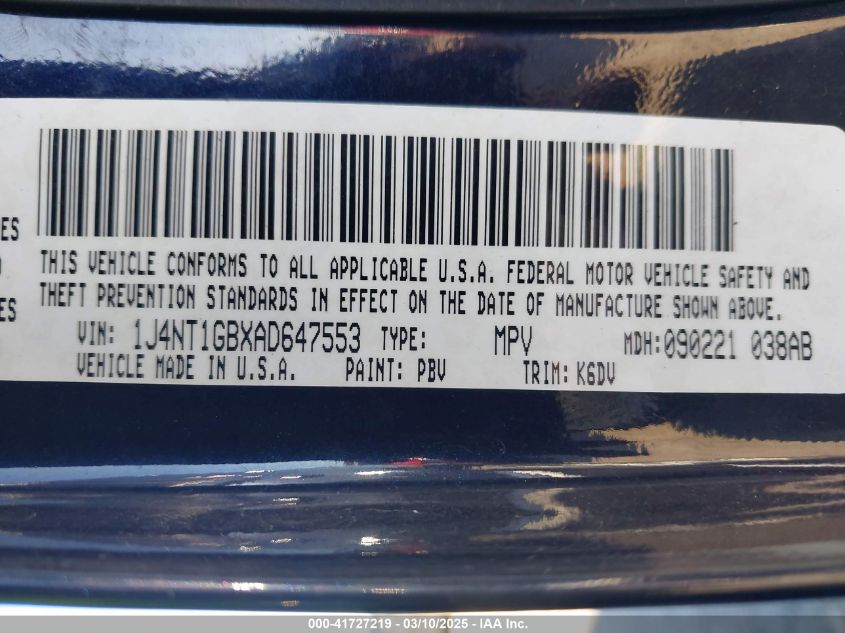 Цвет ЧерныйЦилиндры 4Привод Передний приводVIN 1J4NT1GBXAD******Состояние НеизвестноПовреждения Задняя праваяДата аукциона 2025-03-25 AutoRIA