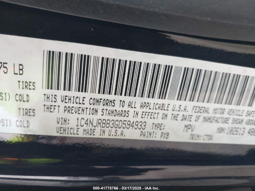 Цвет ЧерныйЦилиндры 4Привод Полный приводVIN 1C4NJRBB3GD******Состояние НеизвестноПовреждения Задняя левая AutoRIA