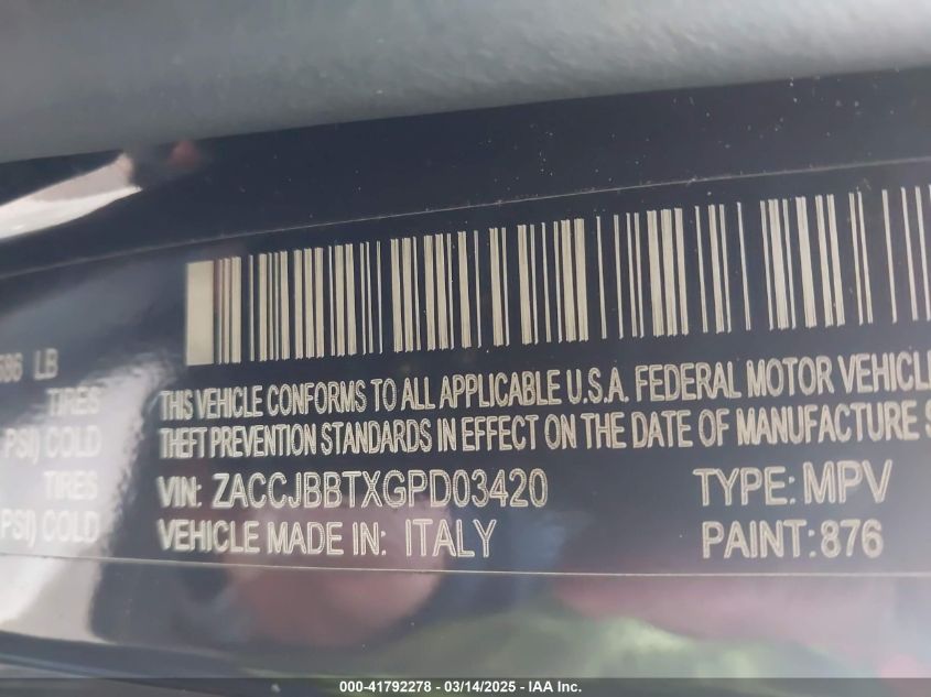 Цвет ЧерныйЦилиндры 4Привод Полный приводVIN ZACCJBBTXGP******Состояние НеизвестноПовреждения Неизвестно AutoRIA