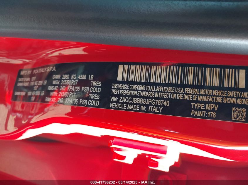Цвет КрасныйЦилиндры 4Привод Полный приводVIN ZACCJBBB9JP******Состояние НеизвестноПовреждения Передняя или задняя AutoRIA