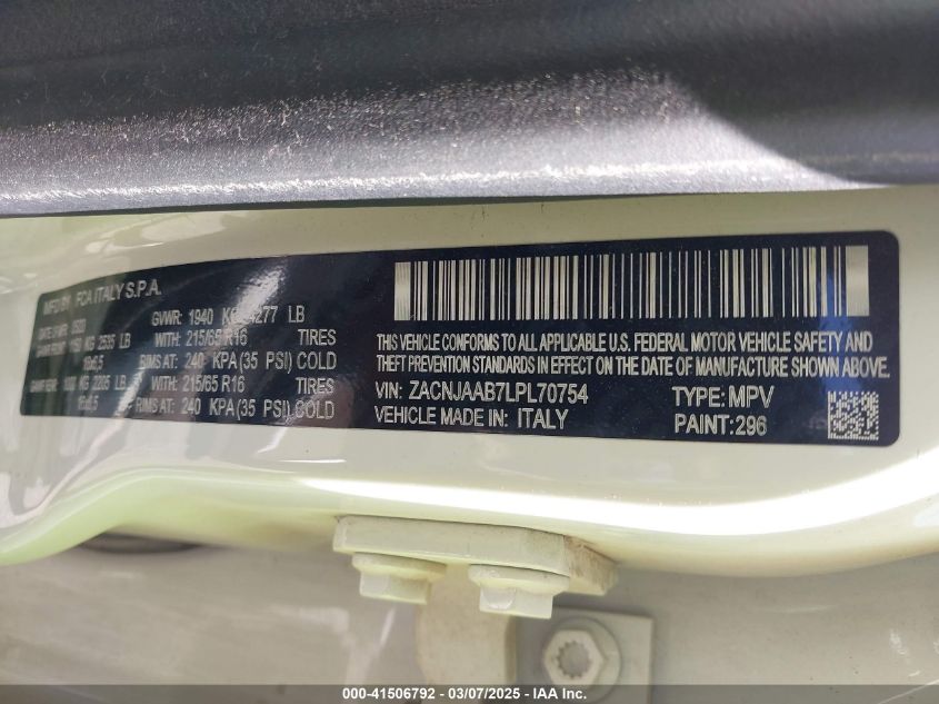 Цвет БелыйЦилиндры 4Привод Передний приводVIN ZACNJAAB7LP******Состояние НеизвестноПовреждения Передняя или задняя AutoRIA
