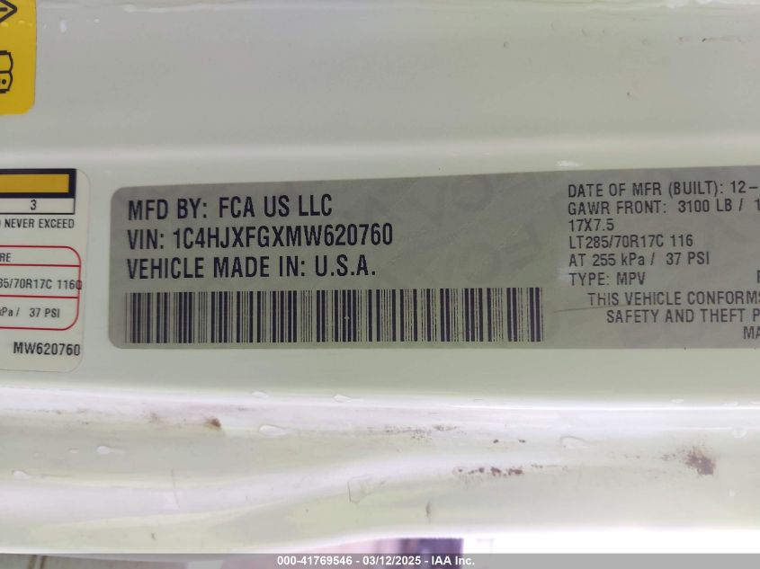 2021 JEEP WRANGLER 2021 року Бензин, 3.6, Полный привод, vin - 1C4HJXFGXMW****** из США
