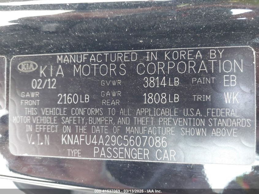 2012 KIA FORTE 2012 року Бензин, 2.0, Передний привод, vin - KNAFU4A29C5****** из США