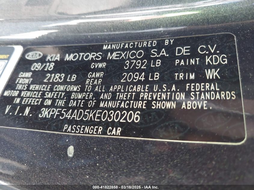 2019 KIA FORTE 2019 року Бензин, 2.0, Передний привод, vin - 3KPF54AD5KE****** из США