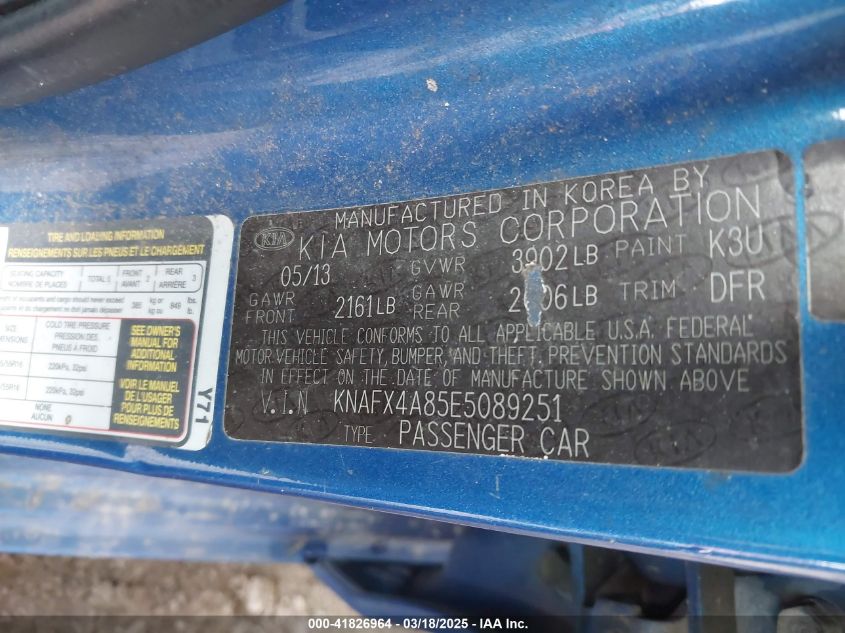 Цвет СинийЦилиндры 4Привод Передний приводVIN KNAFX4A85E5******Состояние НеизвестноПовреждения Передняя или задняя AutoRIA
