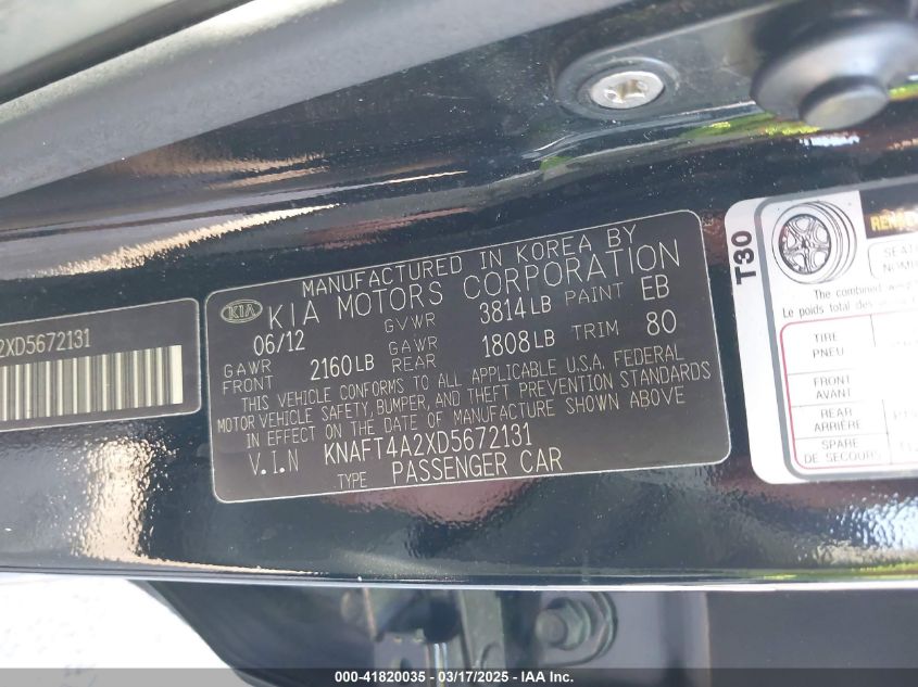 2013 KIA FORTE 2013 року Бензин, 2.0, Передний привод, vin - KNAFT4A2XD5****** из США